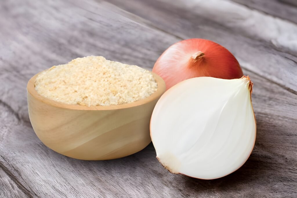 Dehydrated onion powder made from fresh, handpicked onions, retaining natural sweetness and flavor.